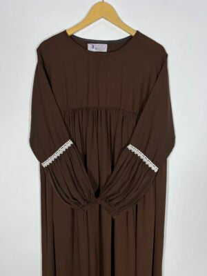 Crafted from lightweight and breathable material, the Maxi Abaya ensures all-day comfort while providing modest full-length coverage. The lace sleeve design adds a touch of femininity and refinement, making it suitable for both casual outings and special occasions.