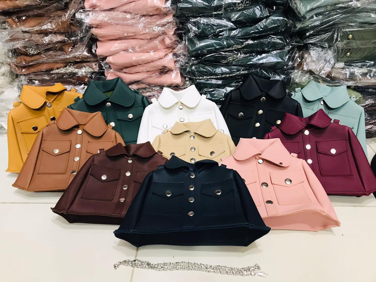 Discover the New Style Frock Bag for Women, designed for fashion-forward ladies in the Middle East. Made with soft high-quality rexine, this stylish handbag features a long silver chain, chic button design, and a unique frock-style jacket shape that makes it stand out. Perfect for daily wear, parties, and gatherings, this bag adds charm to every outfit.